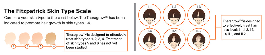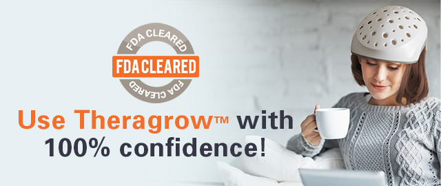 Theragrow™ is an FDA-cleared medical device intended to only treat women ages 18 to 65 years of age for androgenetic alopecia by promoting hair growth in females with female pattern hair loss (FPHL) on the Ludwig and Savin Hair Loss Scale I-II, Fitzpatrick Skin-Types I to IV. Please read all instructions in the safety manual enclosed with the product before use. Please be sure to follow all warning and safety information. Please save the instructions for future reference. You should consult a health care professional if you have any questions about whether use of Theragrow™ is appropriate for you.